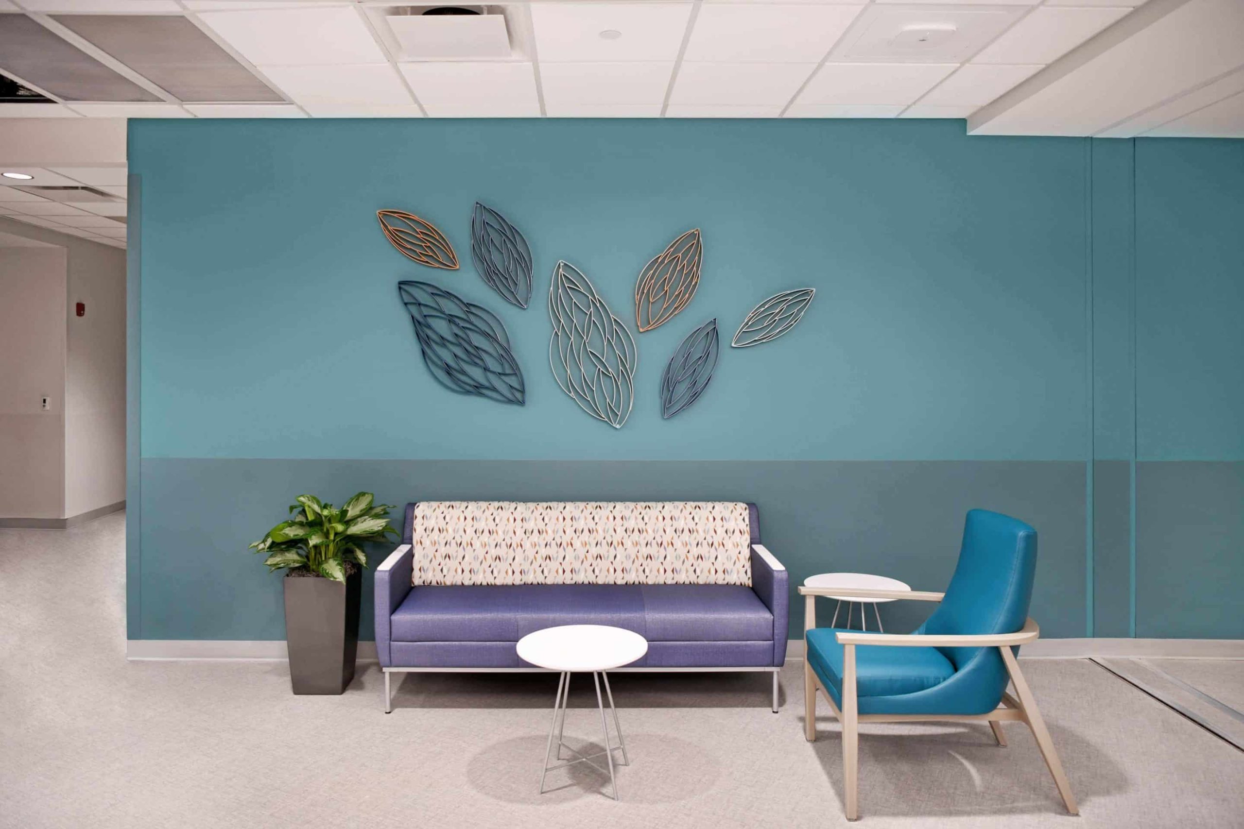 An art committee was established to oversee the selection and voting processes, with an emphasis on ensuring a consistent artistic theme throughout the Atrium Health system. Selecting materials for the artwork was a critical task aimed at achieving both visual appeal and practicality. Large outdoor sculptures were chosen to enhance the landscape and contribute to the overall aesthetic, while artworks in lobby areas were selected to create a welcoming and comfortable atmosphere. Customized graphics featuring regional themes were employed, utilizing durable wall protection materials to combine visual impact with ease of maintenance. This approach ensured that the art installations were not only visually striking but also suited to the demands of a healthcare setting.