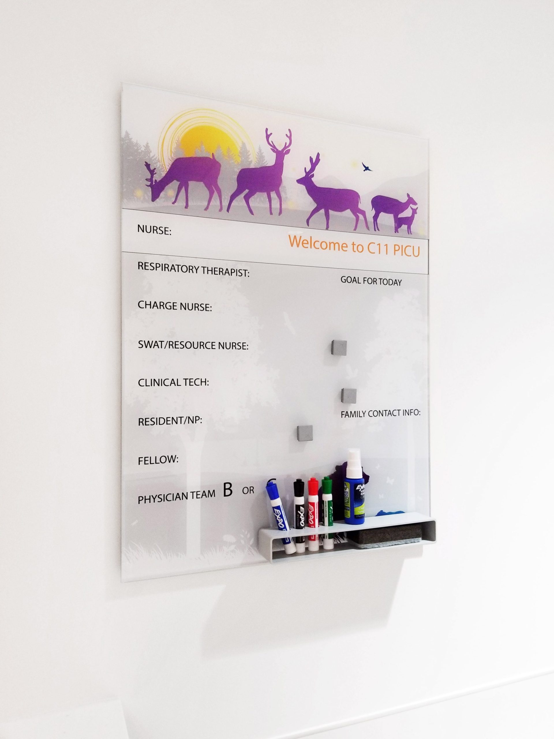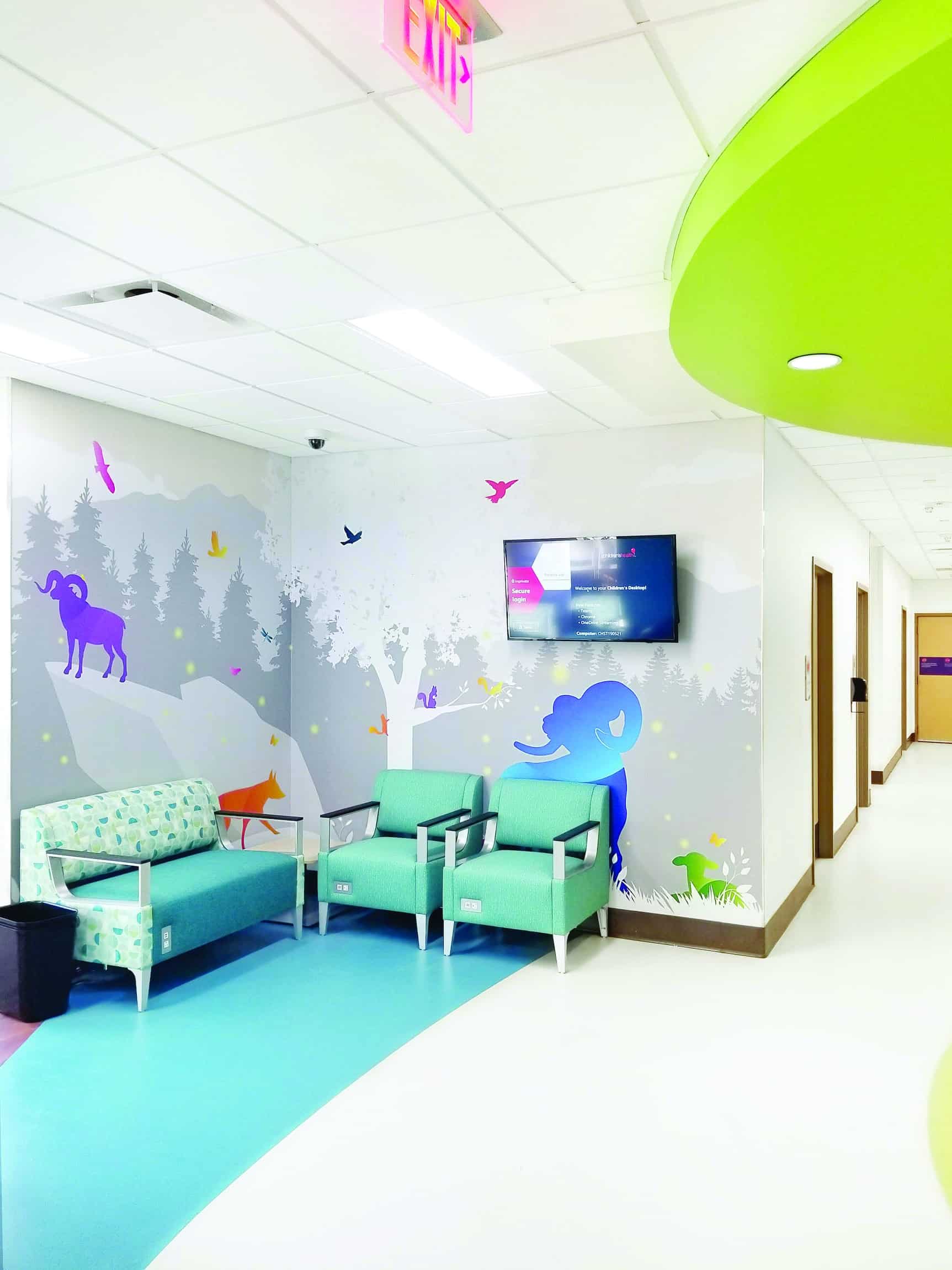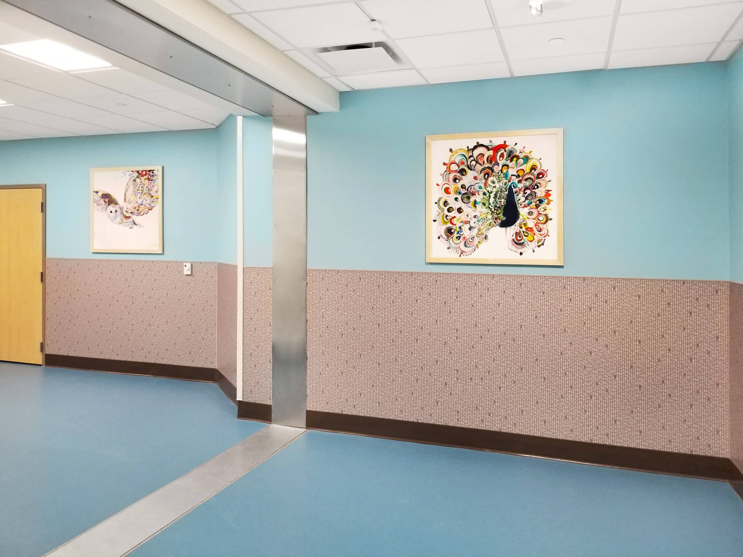 Consistency with the standards from the prior project was maintained in C11. Whimsical-themed custom graphics and durable wall protection were retained to enhance the unit’s aesthetics and safeguard the walls from the rigors of everyday use.