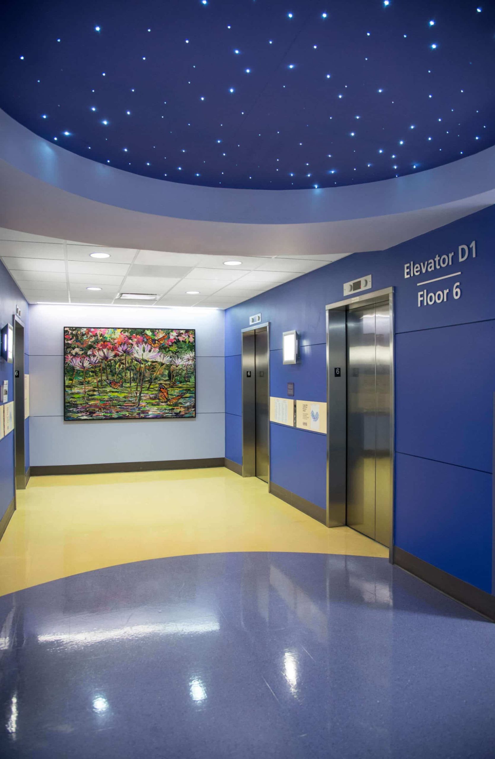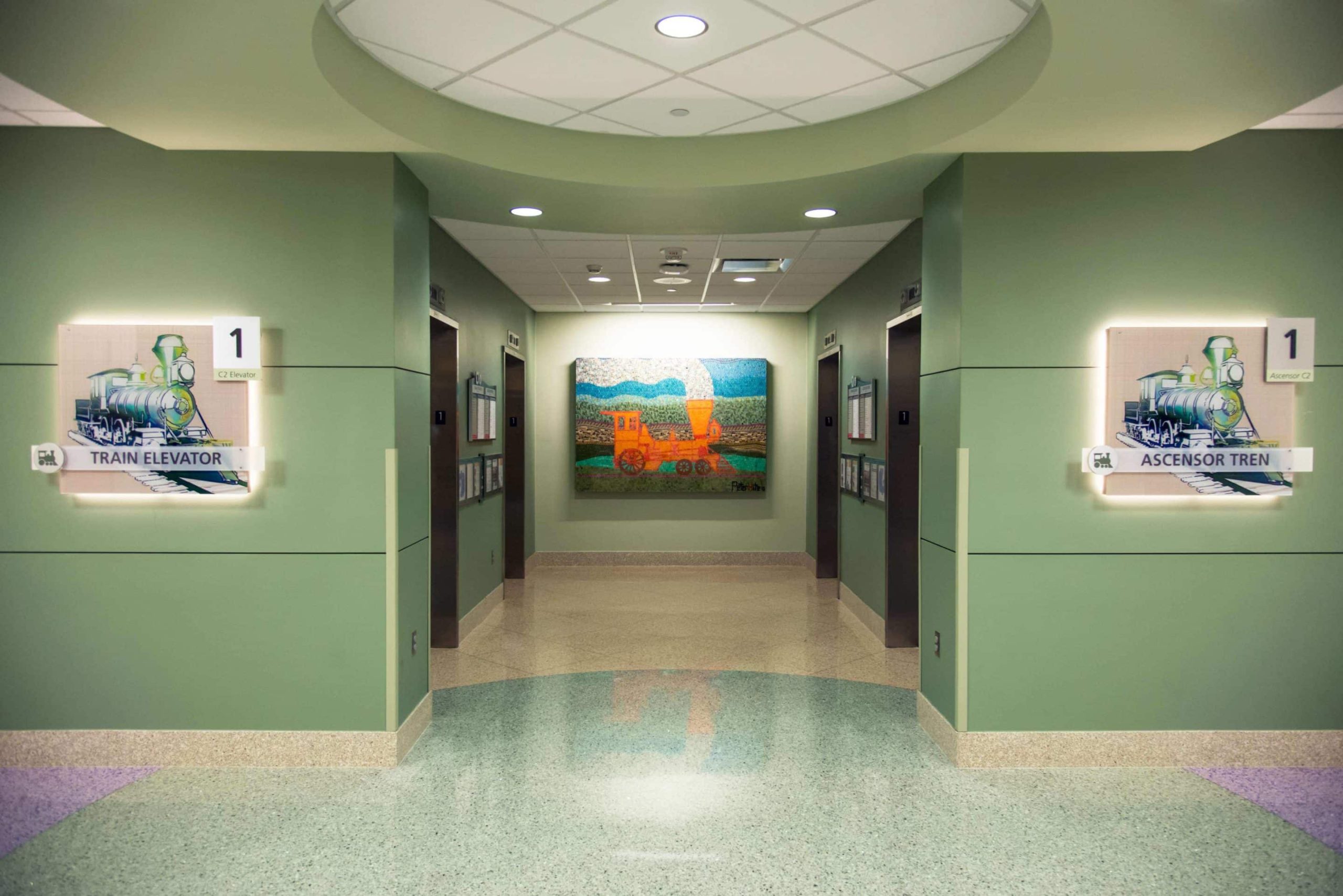 The goal of the new wayfinding directive was for elevator signage and artwork design to assist with wayfinding for pediatric hospital and accompanying buildings. Implementing designs that are helpful for first-time visitors while also engaging for those visiting frequently and/or for length stays was important for patient and family well-being. Concepts required collaborative efforts among WHR Architects, Babendure Design Group, Skyline Art and Children’s Health.
