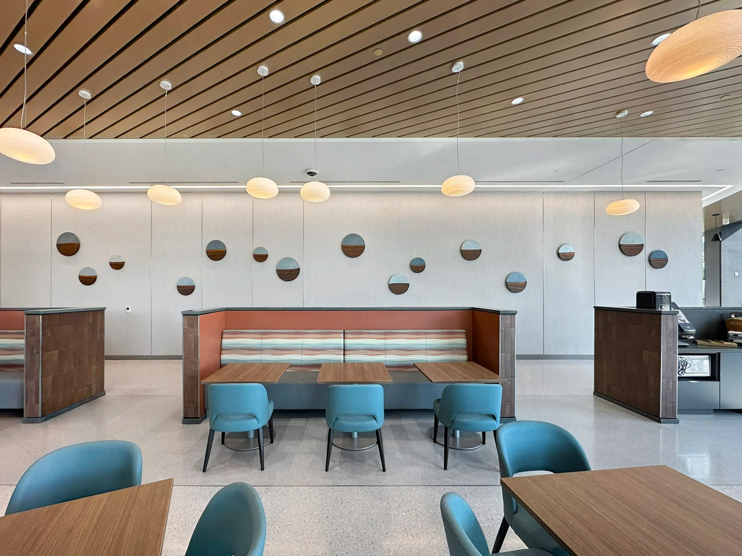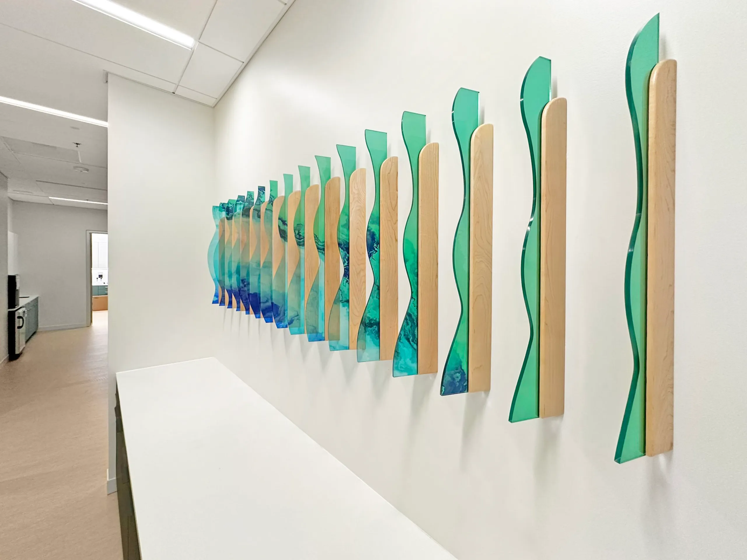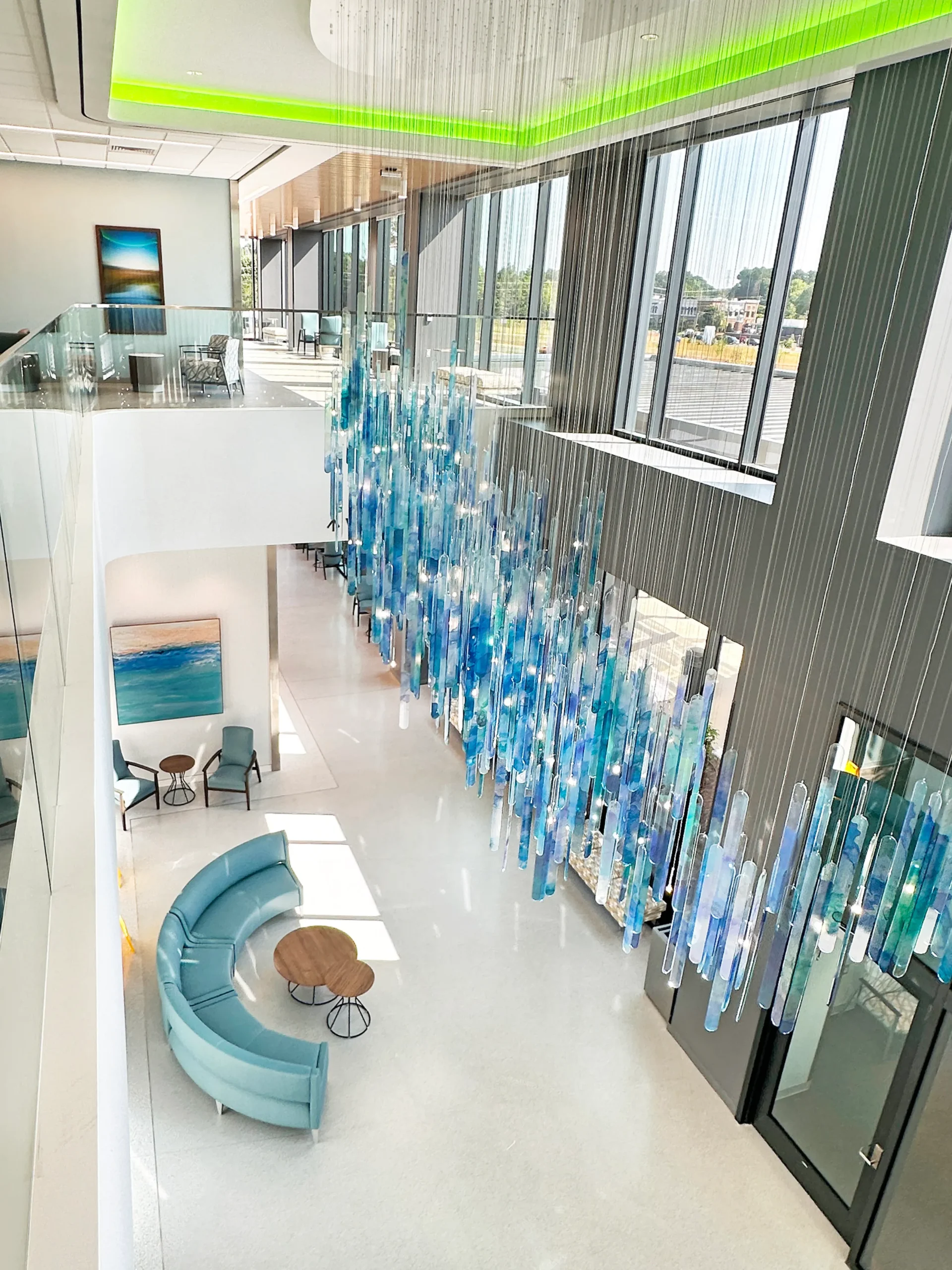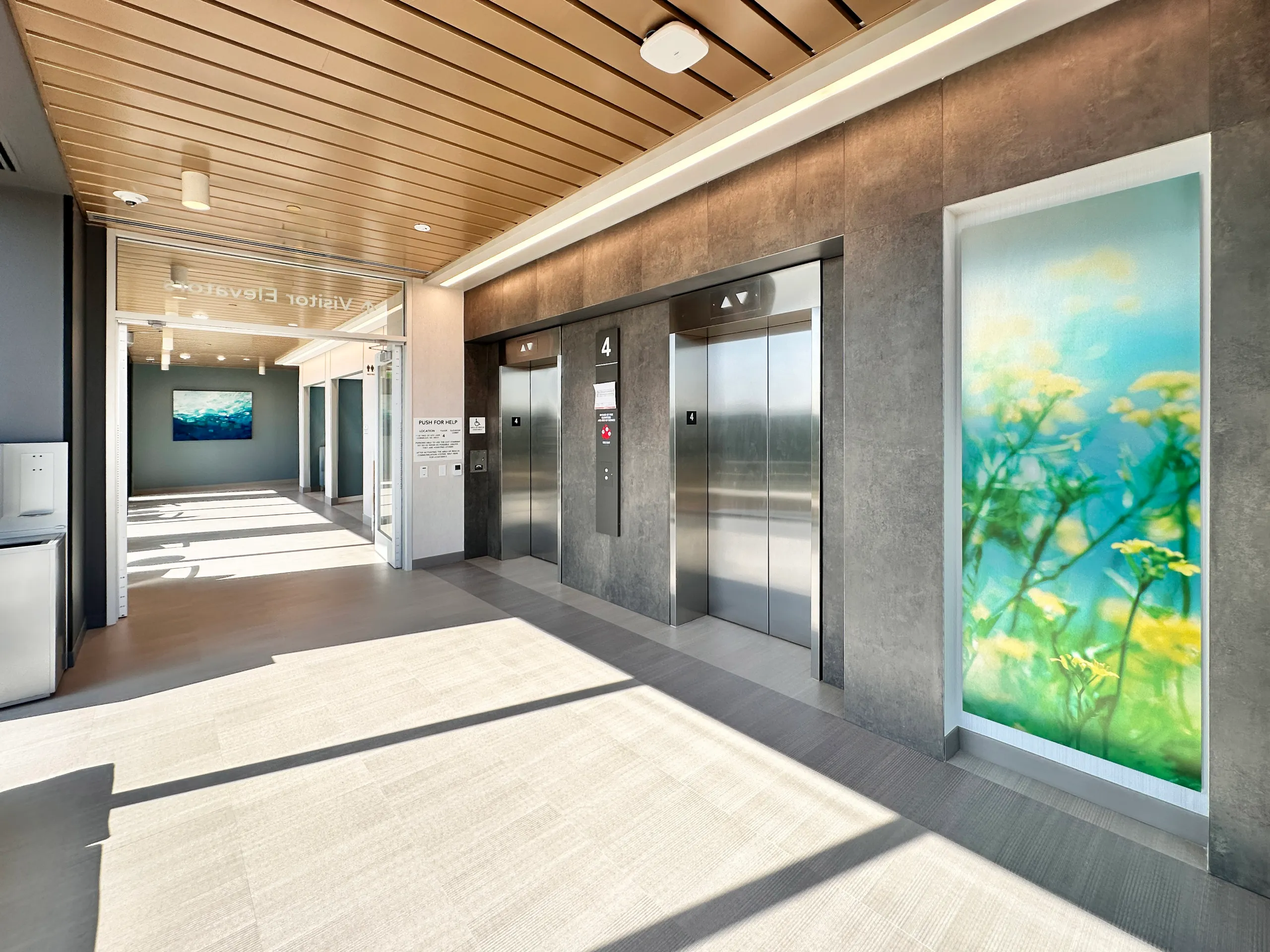 Skyline Art has partnered with Atrium Health Lake Norman to develop a meaningful art program that celebrates the beauty and spirit of the local community. The program focuses on themes of resilience, hope, peace, and perseverance, featuring works by local artists and showcasing the natural charm of Lake Norman. It incorporates native flora and flowing blue designs that reflect the nearby lake, all set against a calming color palette inspired by the hospital’s interior finishes and branding. The outcome is a visually striking program that embodies the region’s identity while promoting a sense of healing and tranquility for patients, visitors, and staff alike.