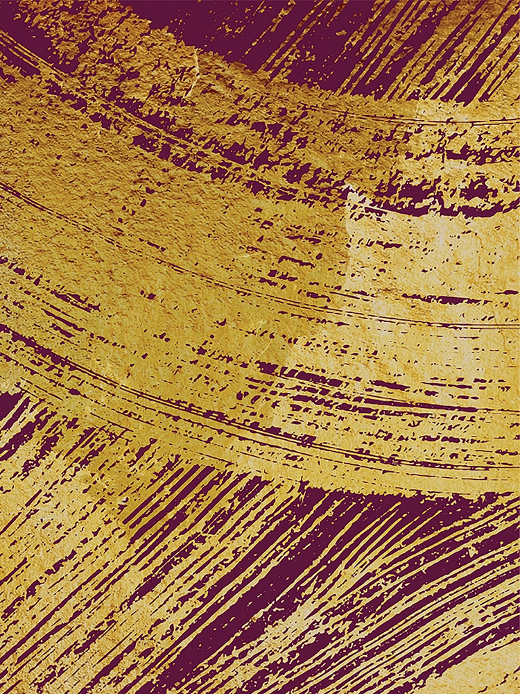 Bold gold brushstrokes sweep across a deep burgundy backdrop, creating a textured, modern composition.