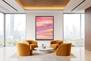 Layered pink hues and dimensional texture evoke calm and continuity.