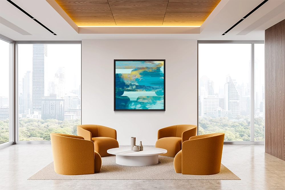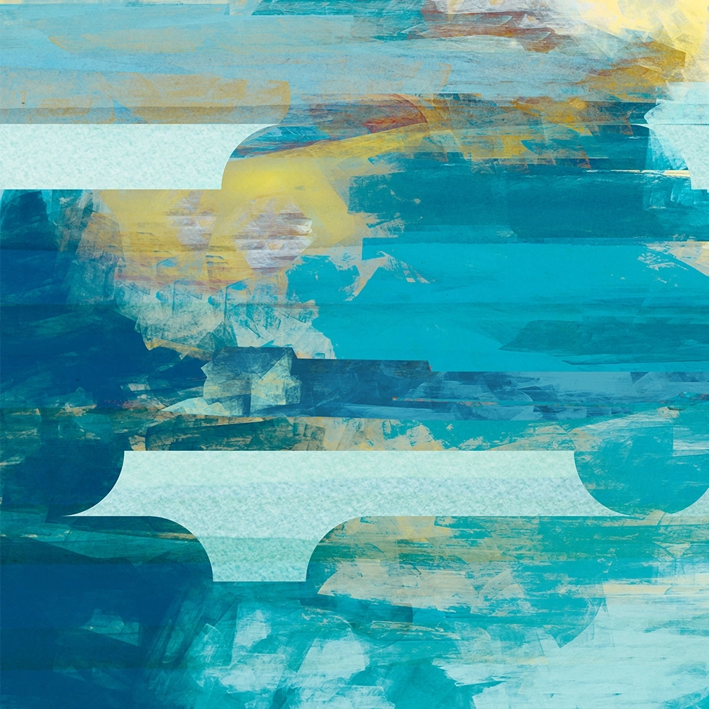 Bold horizontal brushstrokes meet curved cutouts, merging vivid color with abstract layered movement.