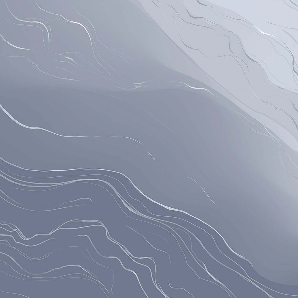 A flowing abstract of soft gray and white, echoing ice, water, and topographic forms.