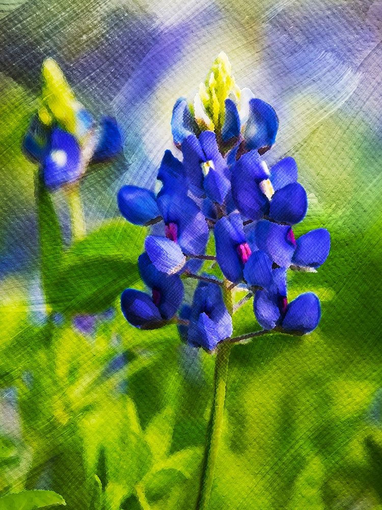 Beautiful and bold bluebonnet backed with thick artistic brush strokes.