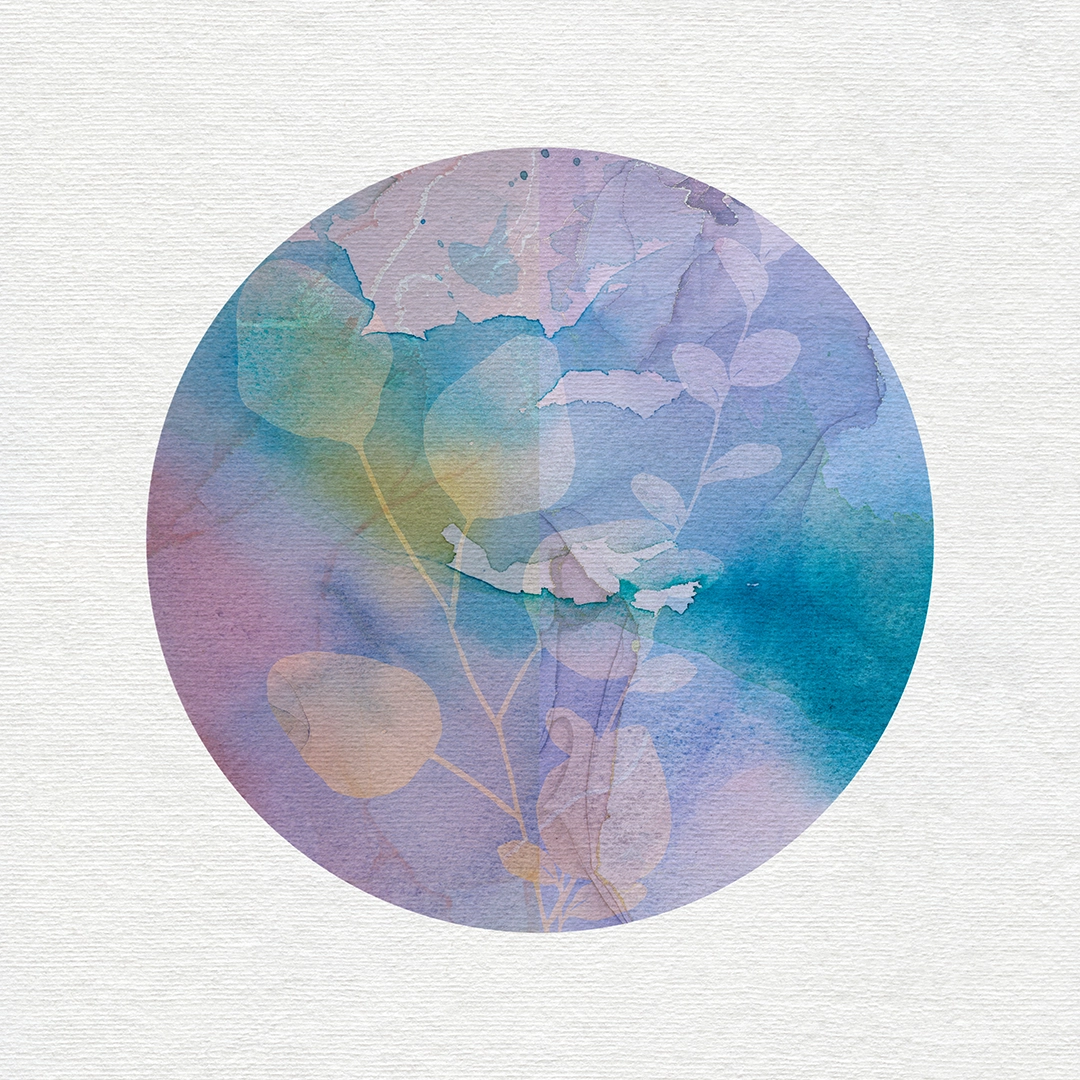 Gentle violet tones envelop faint botanical silhouettes, radiating calm and meditative beauty.