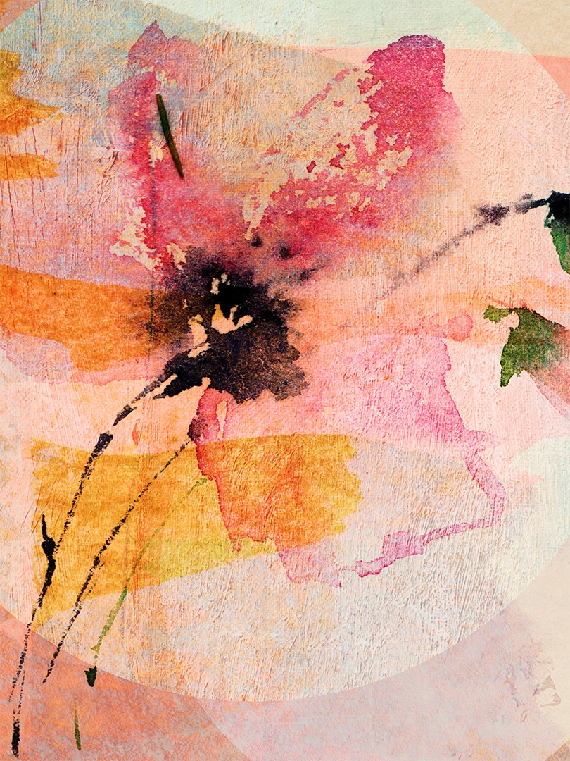Imprint of a stem with faint traces of petals stamp the flower that rises before a brilliant sun.