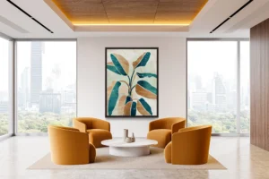 Leaf forms glow with earthy radiance, merging tranquil greens and golden undertones.