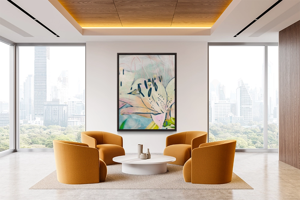 Graceful lily petals unfold in muted pastels, blending delicacy with timeless elegance.