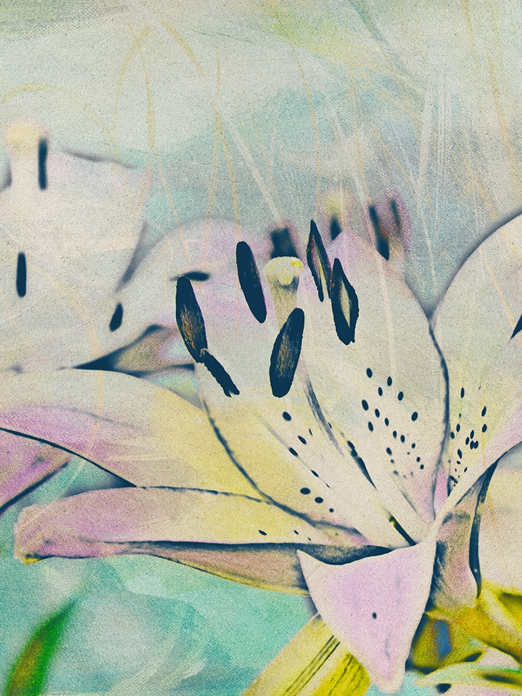Blooming lily glows with soft yellow-pink hues, radiating gentle warmth and serenity.