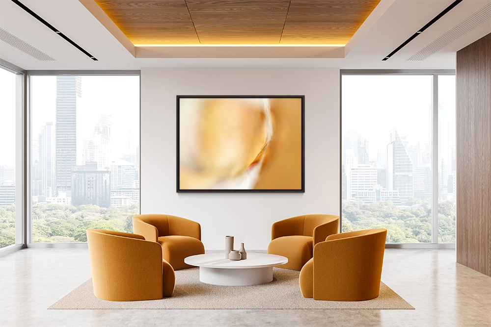 Golden hues blur softly, revealing warmth and delicate curvature through abstract macro focus.