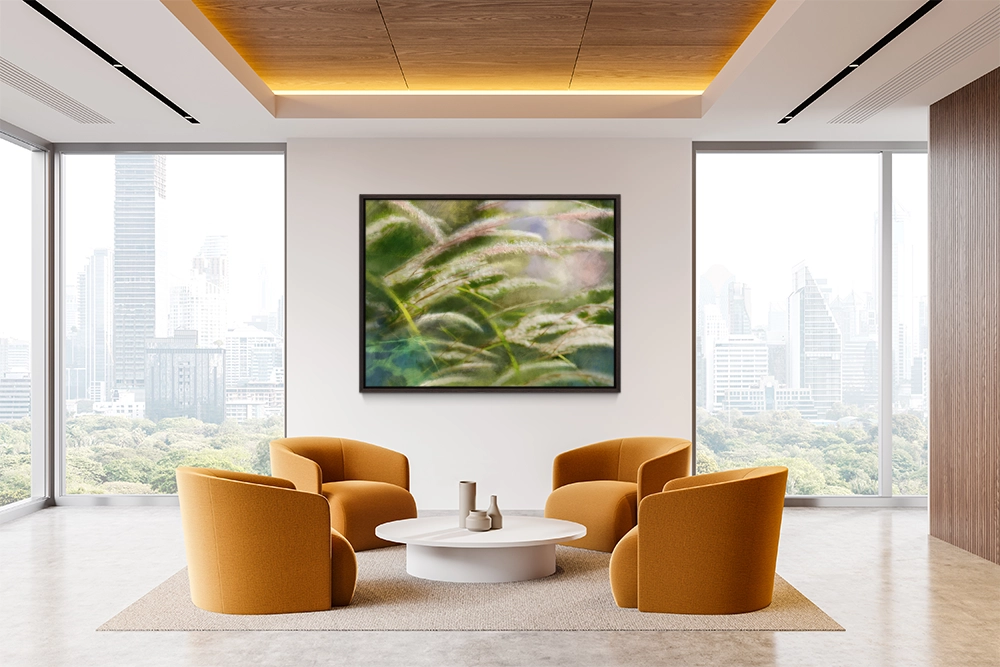 Tall grasses swaying gently with a soft sense of motion.