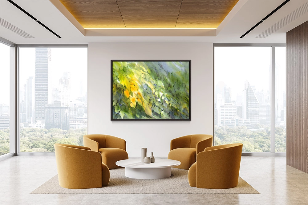 Keywords: abstract landscape, brushstrokes, leaves, nature, rays, vines