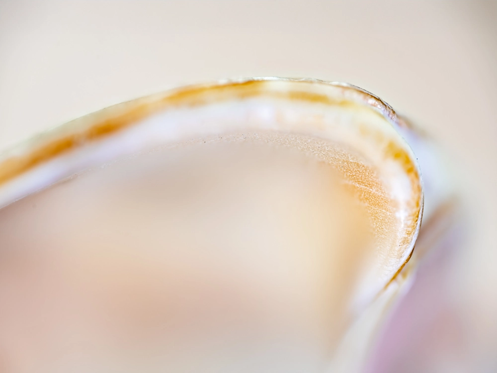 Soft curves glow with peach light, revealing delicate shell textures in focus.