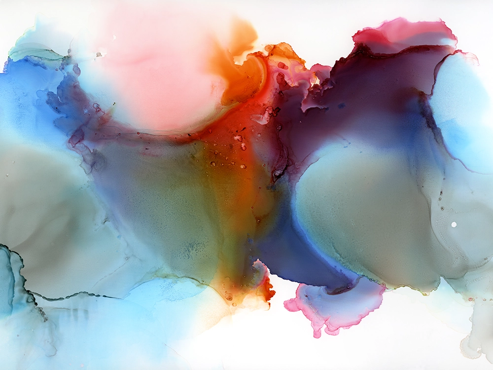Austin, Texas–based painter Andrea Pramuk creates organic abstractions by blending paint pouring techniques with image lift and transfer, layered with delicate brushwork.