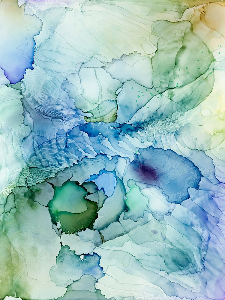 Austin, Texas–based painter Andrea Pramuk creates organic abstractions by blending paint pouring techniques with image lift and transfer, layered with delicate brushwork.