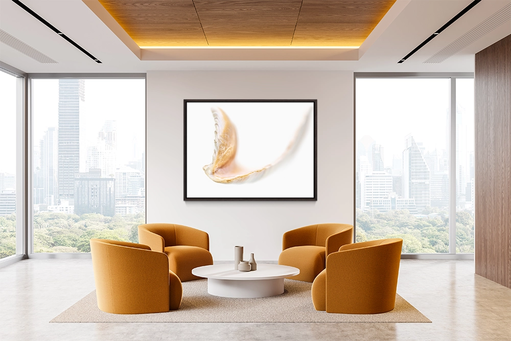 Delicate shell curves upward gracefully, revealing smooth textures and sunlit translucence.
