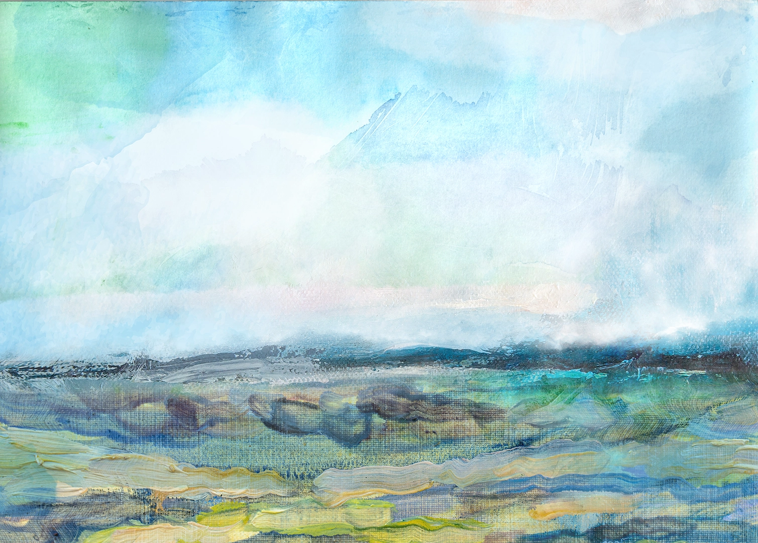 Keywords: abstract landscape, brushstrokes, clouds, colorful, horizon, landscape, nature, painterly, sky, texture