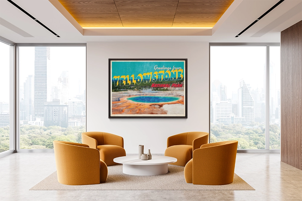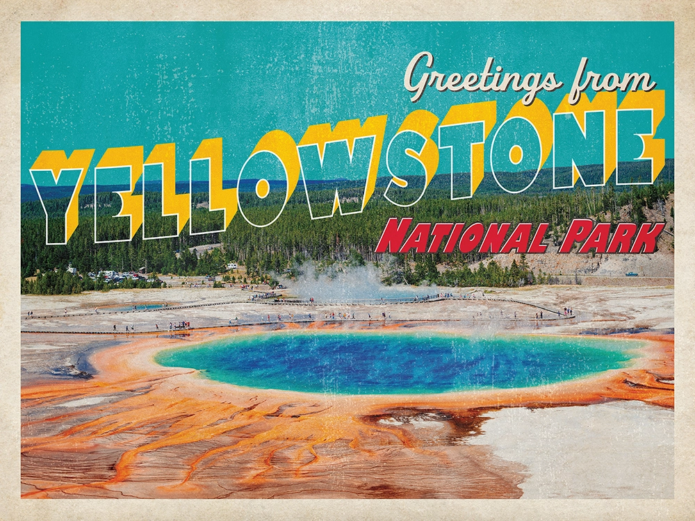 A striking postcard that celebrates the rugged majesty of Yellowstone National Park.